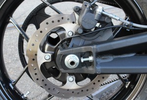 Hinterradbremse – Im Vergleich zu den meisten anderen sportlichen Motorrädern fällt die Hinterradbremse bei der ZERO recht groß dimensioniert aus – schöne Schweißnähte